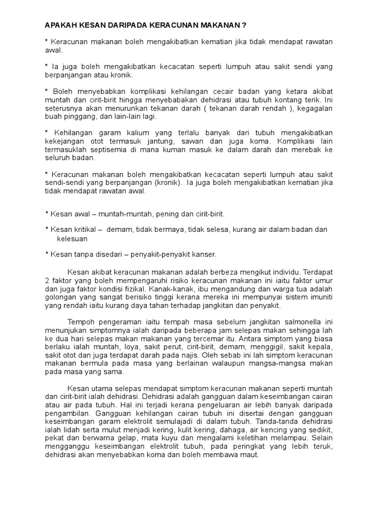 Apakah Kesan Daripada Keracunan Makanan Pdf